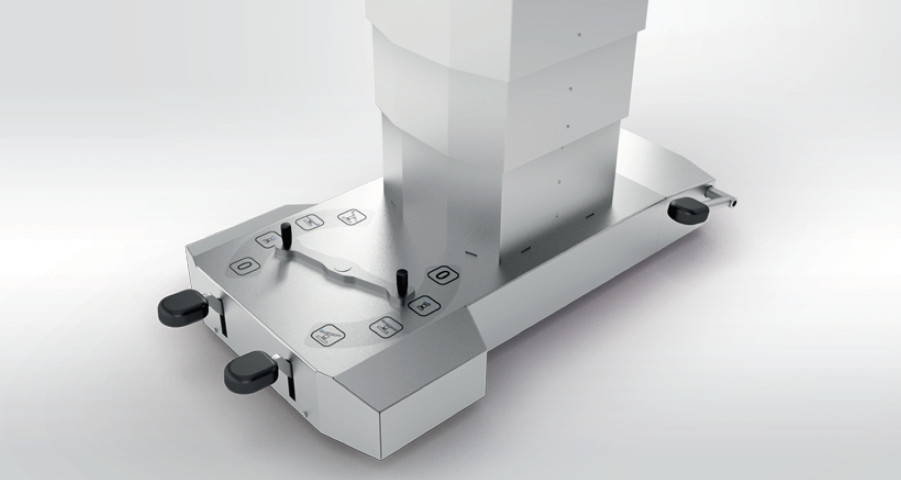 Standardowa podstawa w kształcie litery “T” z trzema kołami antystatycznymi, z centralną blokadą nożną. Opcjonalnie dostępna podstawa ułatwiająca manewrowanie i lepszy dostęp do pola operacyjnego dzięki zastosowaniu 4 antystatycznych kół o średnicy 125 mm. Układ jezdny z centralną blokadą nożną oraz kołem kierunkowym. Poszczególne elementy blatu oraz osłony kolumny i podstawy stołu wykonane z matowionej stali nierdzewnej, co czyni powierzchnię gładką i higieniczną. Osłony odporne na uderzenia, łatwe do czyszczenia, odporne na wnikanie cieczy co minimalizuje ryzyko zakażenia. Najwyższej jakości materace antystatyczne, wykonane z pianki poliuretanowej o grubości 50 mm. Łatwo odejmowalne, bezszwowe, zapewniają maksymalną higienę i zapobiegają zakażeniom.